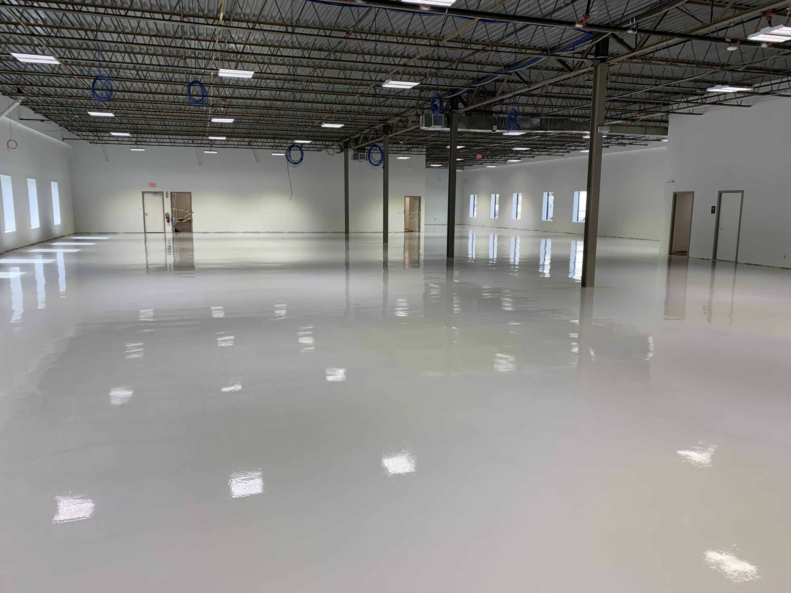 Choose from polished concrete, epoxy coatings, flake designs, or metallic finishes to match your company’s brand and space needs.